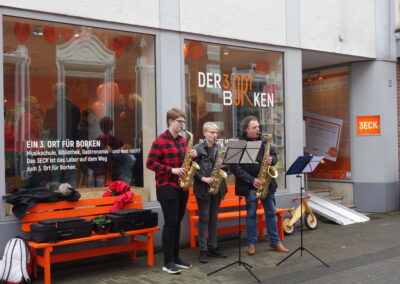 Seit Februar 2020 gibt es das „3ECK“. Es ist das Testlabor des Projekts und der erste Meilenstein auf dem Weg zum finalen Dritten Ort, in dem sich Musikschule Borken, Remigius Bücherei und weitere Partner in einem Neubau zusammenschließen wollen. Das Testlabor probiert die Angebote des finalen Dritten Orts aus und begeistert weitere Partnern und Partnerinnen und Ehrenamtliche für das Projekt. Das kostenfrei zugängliche Wochenprogramm bietet verschiedene Treffs und Kulturformate im weiteren Sinne an. Vom Spielenachmittag, über eine Vorlesestunde, Informationsnachmittage der VHS bis zum Debattieren und Singen: Das breite Angebot lädt jederzeit zum Mitmachen ein! Vor allem aber stehen die Türen offen für Interessierte und Engagierte wie Einrichtungen, Vereine und Initiativen, die das 3ECK mit Leben füllen.