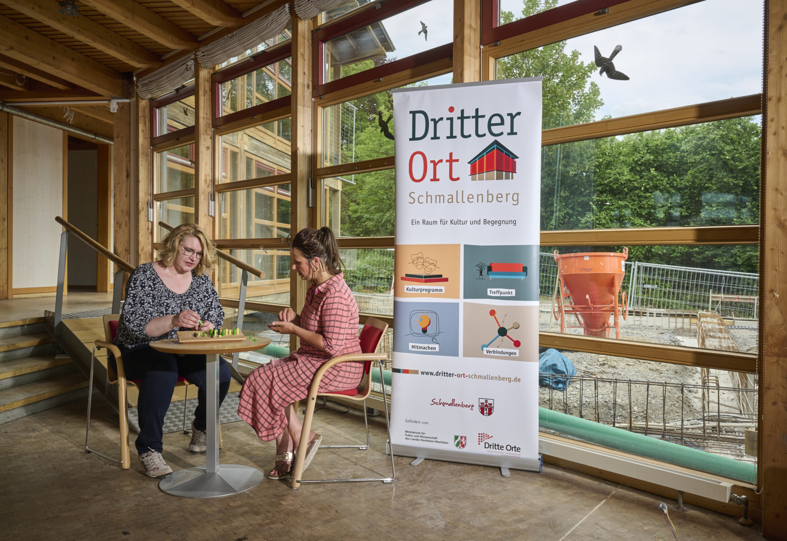 In Schmallenberg, der flächenmäßig größten Kommune des Bundeslandes, werden Kulturangebote sehr oft ehrenamtlich organisiert. Nun schafft der „Dritte Ort“ im Holz- und Touristikzentrum einen neuen, zentralen Kulturort für Veranstaltungen, Ausstellungen und Begegnung. In dem markanten Gebäude entsteht derzeit durch einen umfangreichen Umbau ein multifunktionaler Raum, den ehrenamtlich Aktive für Ihre Ideen nutzen können. Bis dahin ist der Dritte Ort „on tour“ und hält an verschiedenen Orten in der Stadt Einzug. Die Themen Holz, Wald, Tourismus, Digitalität und die Kunstsparte Fotografie finden dabei besondere Beachtung.