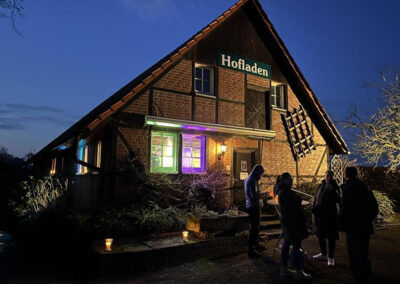 In einem ehemaligen Hofladen entsteht nun ein Dritter Ort, der eine Hybridfunktion als Begegnungs-, Lehr- und Lernort einnimmt und dabei Umweltbildung mit Kultur verbindet. Das Gebäude wird so gestaltet, dass hier Veranstaltungen und Bildungsformate stattfinden können, ein Teil des angrenzenden Ackers wird zu einem Lehrgarten umgewandelt. Ergänzt wird dies durch gastronomische Angebote, welche die ansprechende und gemütliche Atmosphäre des Dritten Ortes aufwerten werden.