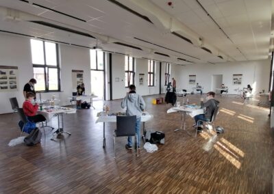 Auf einem ehemaligen Zechengelände „Schirrhof“ gelegen, wurde das Familien-, Kultur- und Bildungszentrum um den Dritten Ort ergänzt. Im ehemaligen „Pferdestall“, einem großen multifunktional nutzbaren Raum, finden nun u.a. Konzerte, Lesungen und Ausstellungen statt. Er dient jedoch auch vielen Ehrenamtlichen als Raum für ihr Engagement. Im Garten trifft sich das Färbergarten-Netzwerk, der nah gelegene Pump-Track dient v. a. Jugendlichen als Treffpunkt, regelmäßige offene Angebote führen Menschen im Schirrhof zusammen.